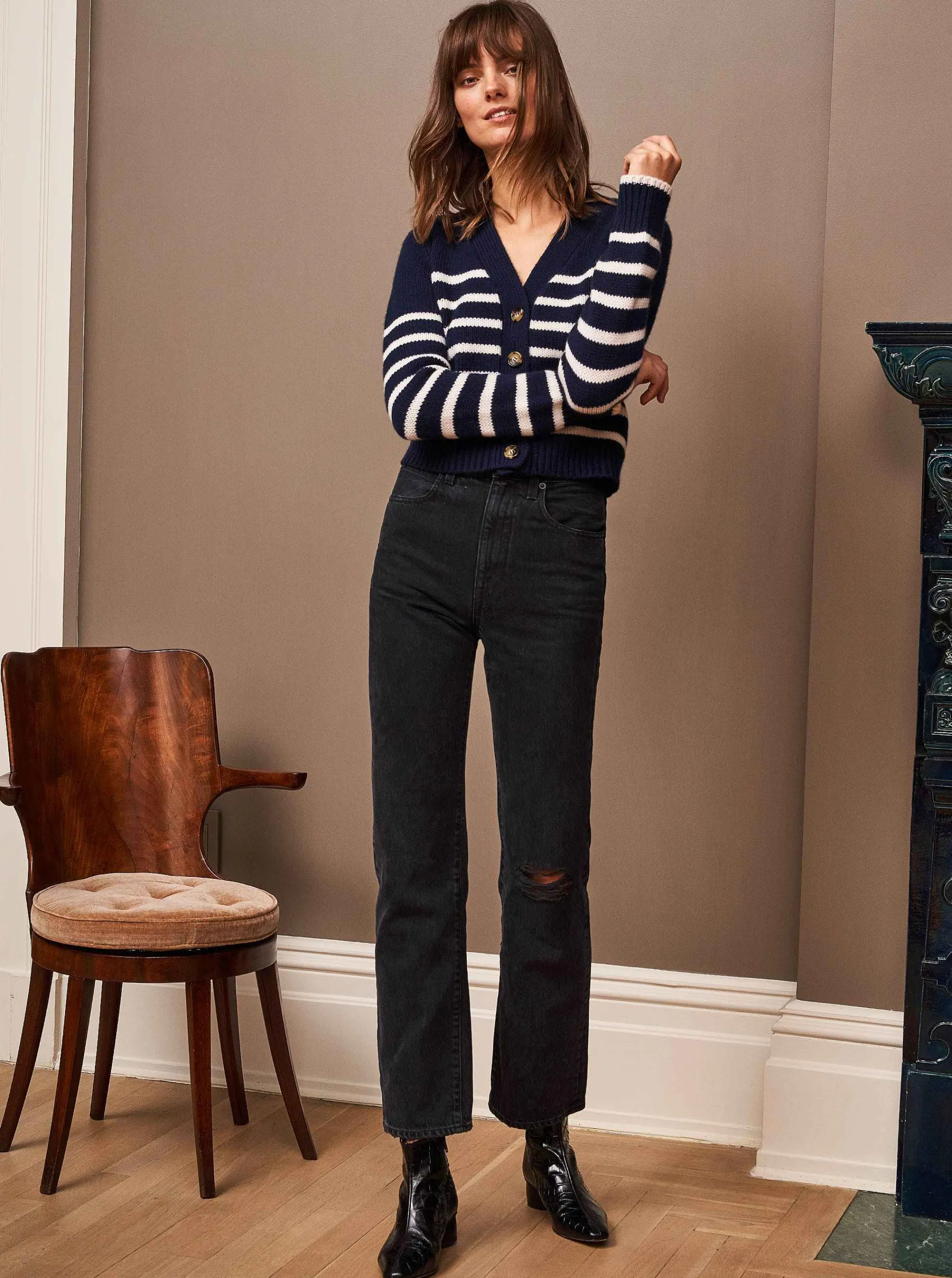 Our Newest Addition To The Marin Family, The Mini Marin Cardigan Is Just As Sweet As Sister Mini Marin, With A V Neck Button Front In Navy And Cream Stripes.