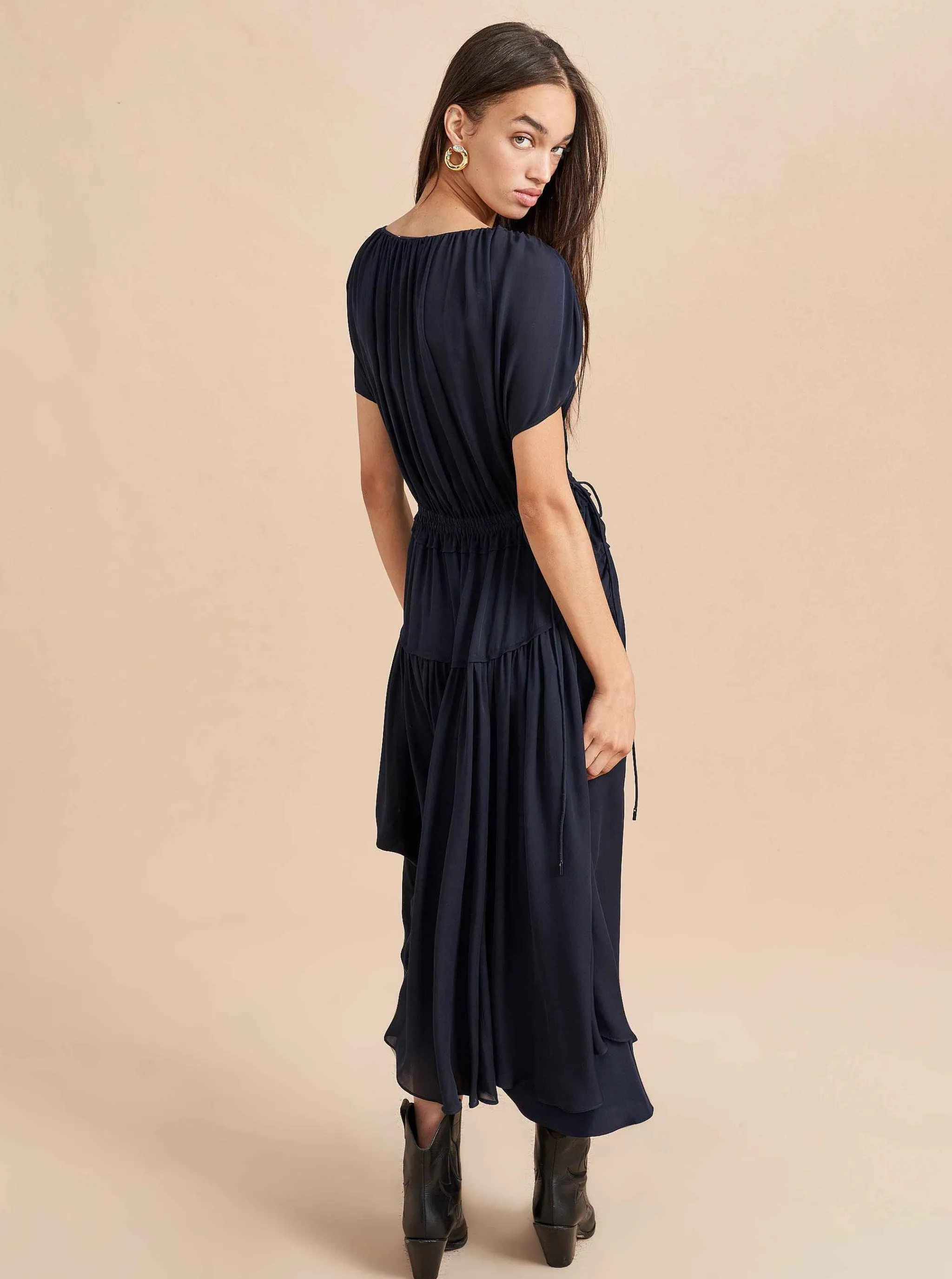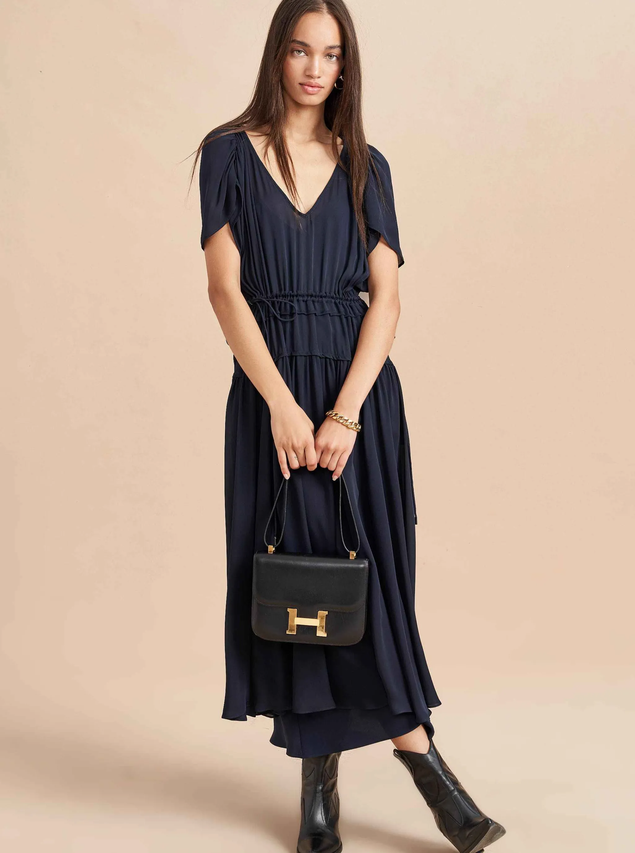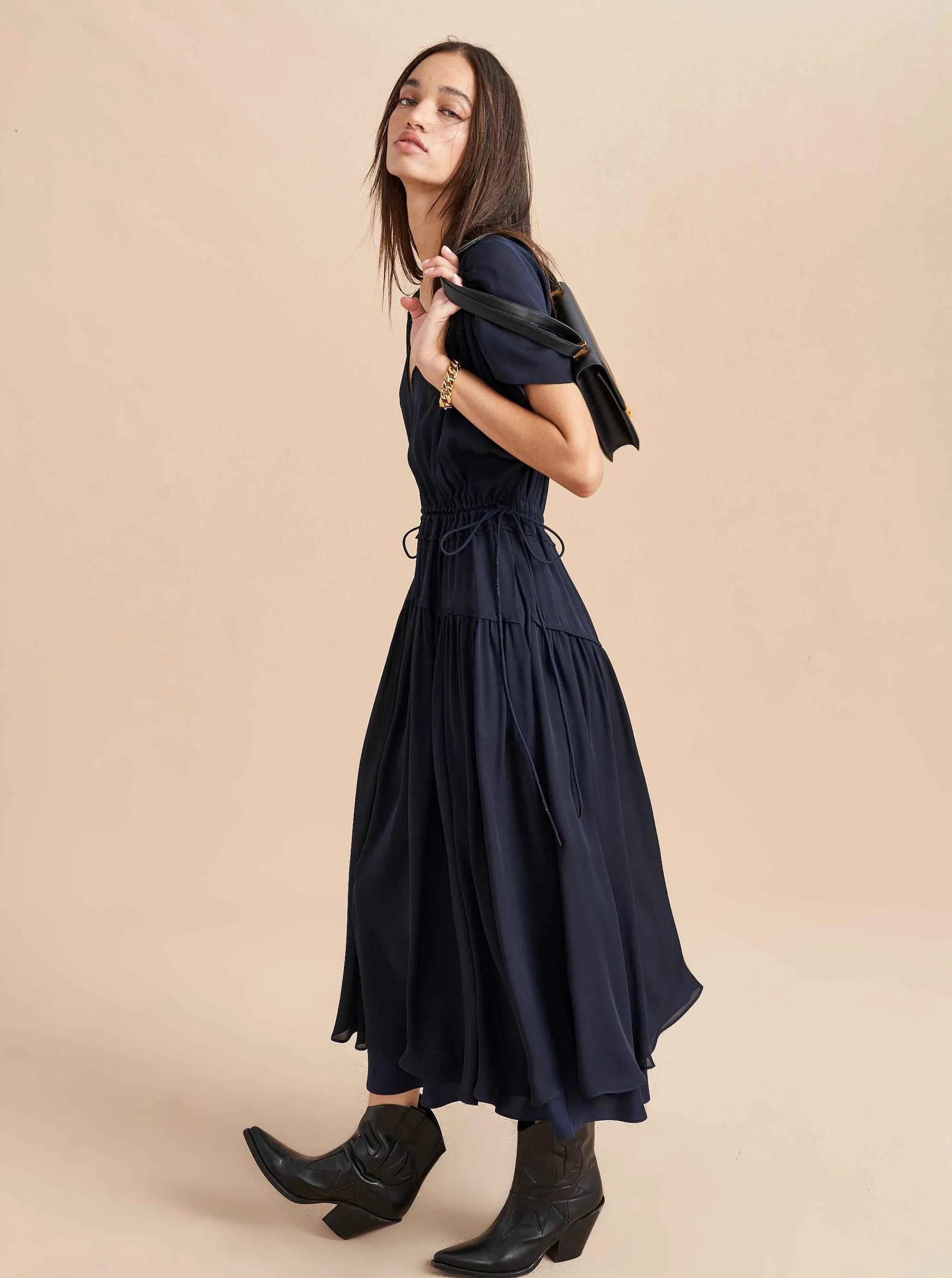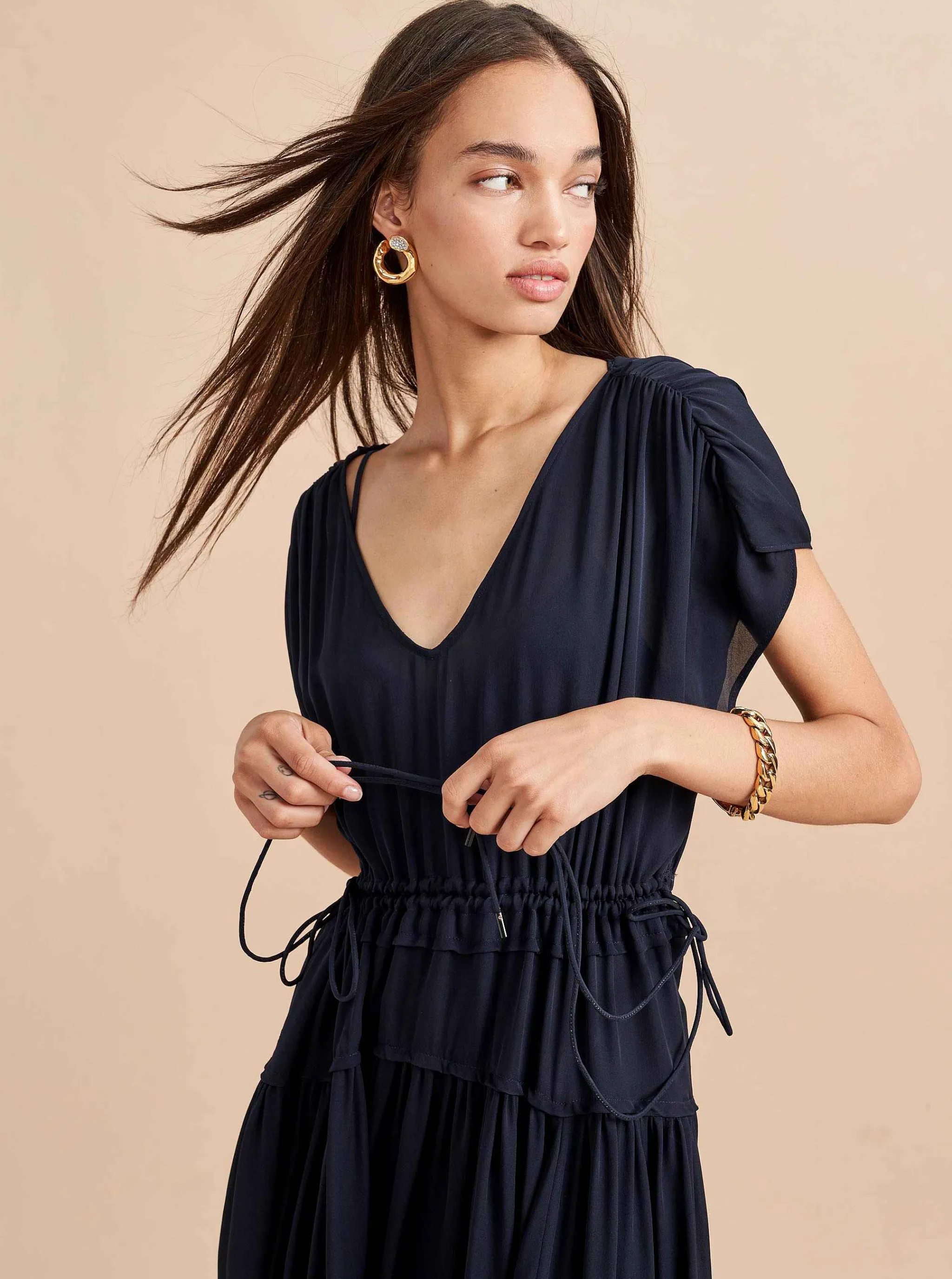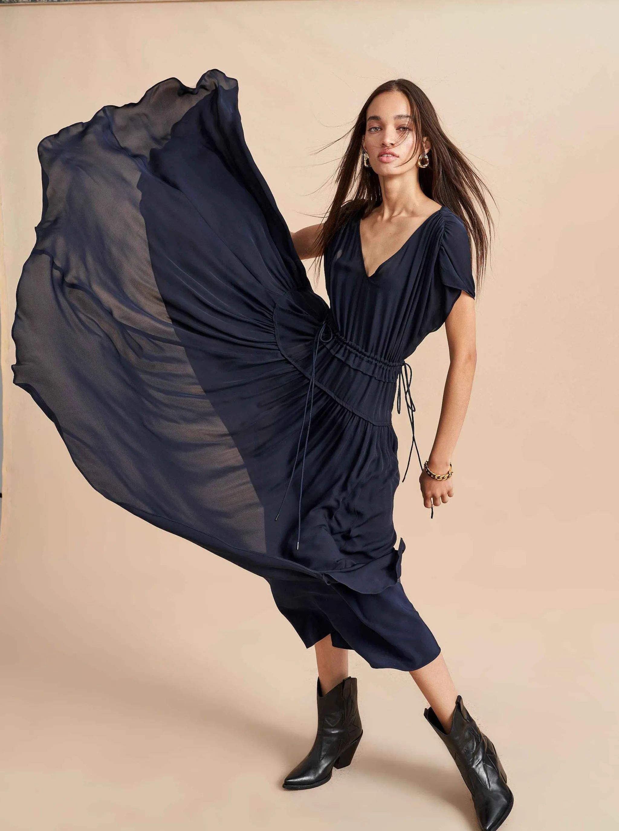 Not All Heroes Wear Capes, But You Can’T Mistake The Ones That Do. Enter The Natalie Dress With Its Delicately Shirred, Dolman Cape Sleeves That Drape Over The Shoulders Into A Flattering V-Neckline. An Accentuated Waist And Fluid Skirt In 100% Double Georgette Silk Round Out This Number That Is Here To Save The Day (And Night).