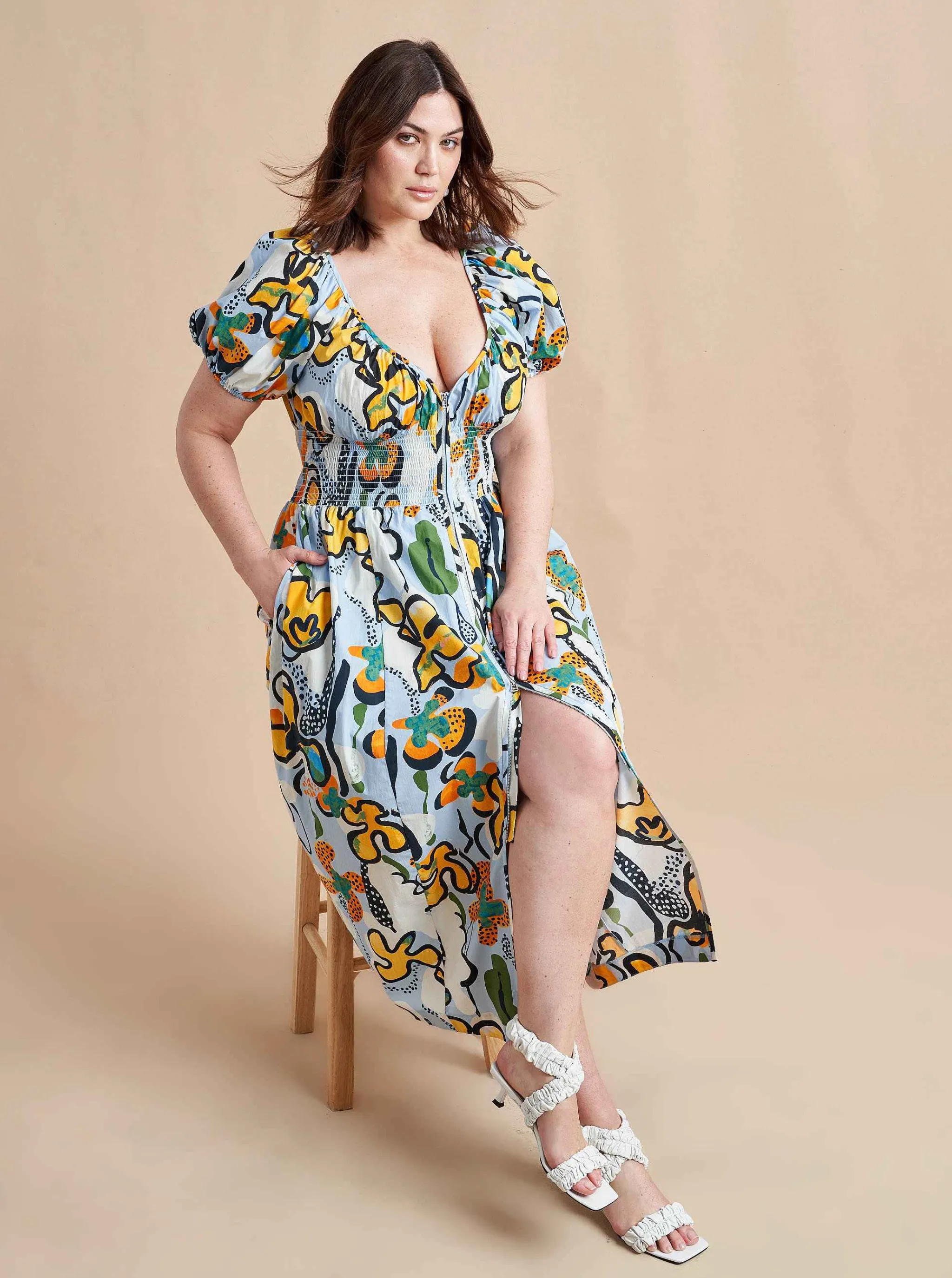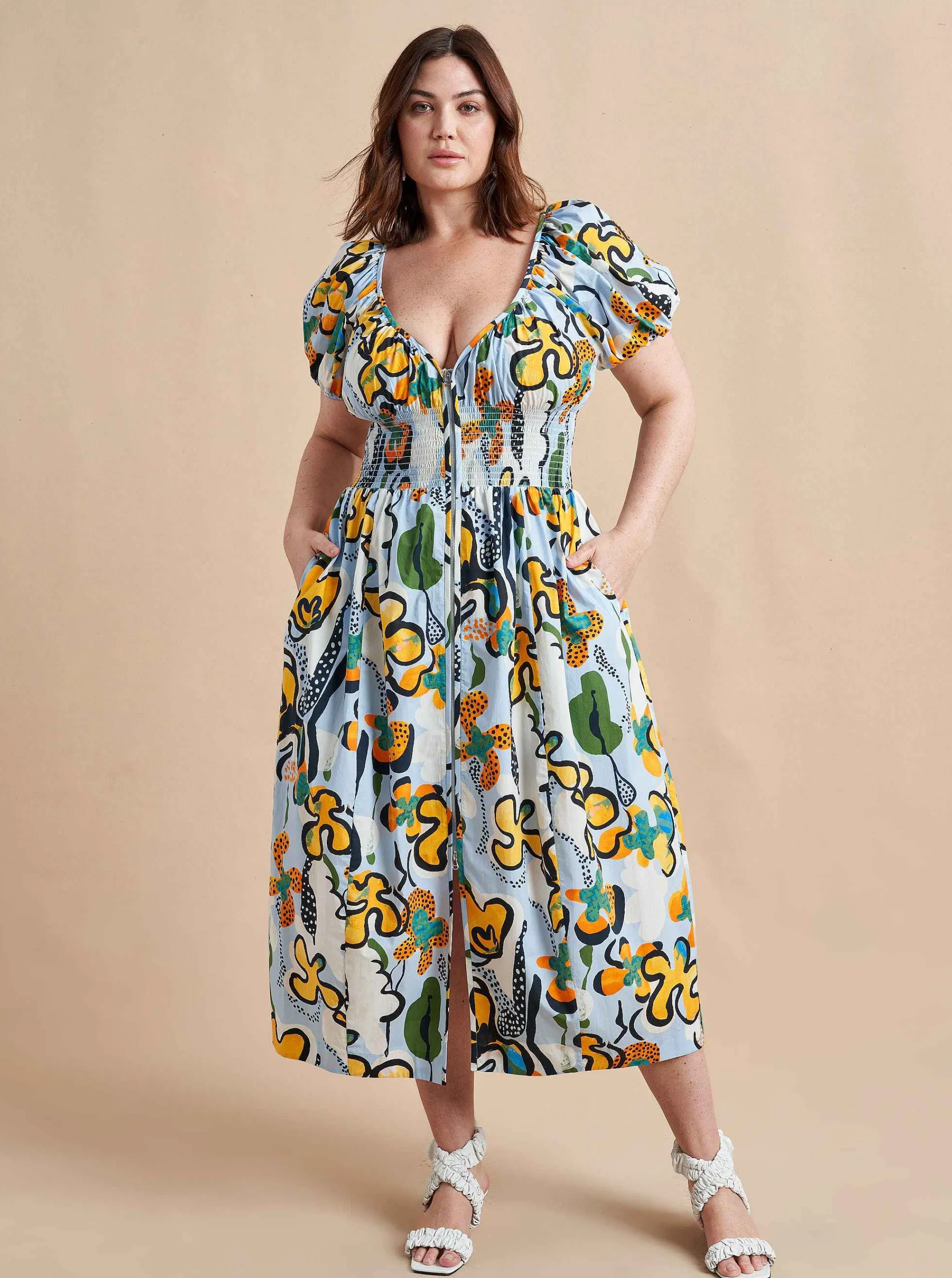 What If We Made A Dress With All Of Our Favorite Things? Meet Celina, Our Romantic Yet Sporty, Smocked Waist, Puff Sleeve, V-Neck, Must-Have Dress Featuring A Tulip Skirt With Pockets And A Two-Way Zipper To Show As Little Or As Much Skin As You Like? Did We Miss Anything?