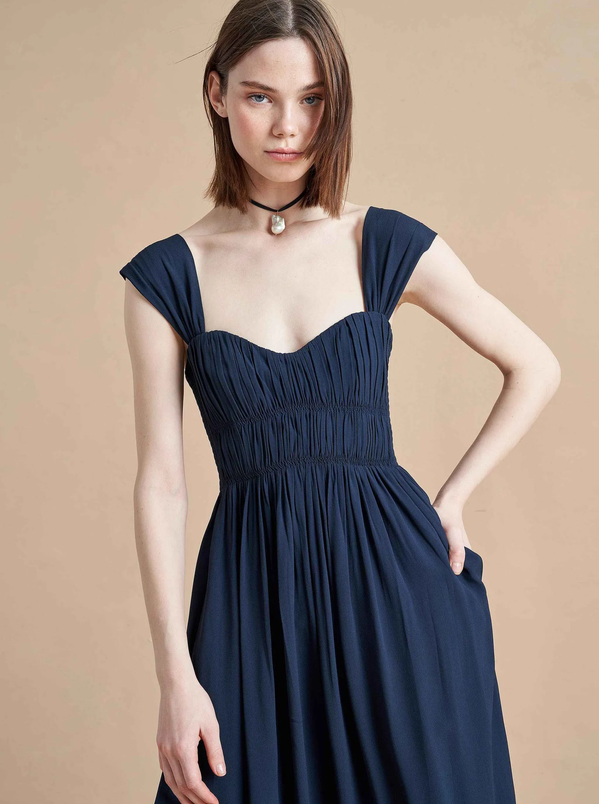 Simple And Chic, This Easy Yet Fabulous Dress Is Big On Details Like Tonal Topstitching On The Bust And Waist For Shape, Smocked Panels For Ease And A Flattering Sweetheart Neckline. Pair With One Of Our Cardigans For Cooler Days And Consider Wearing The Straps Off The Shoulder To Spice Up The Evening. Details