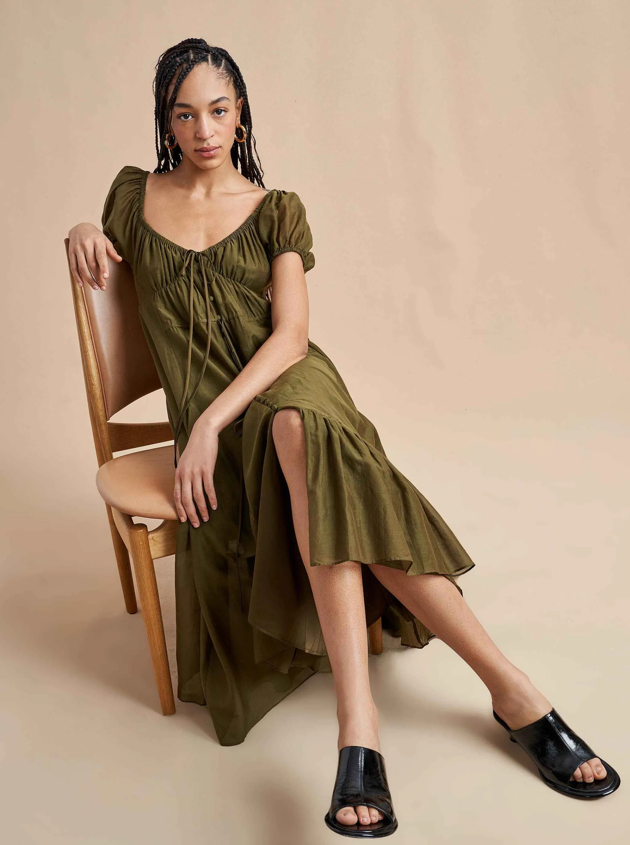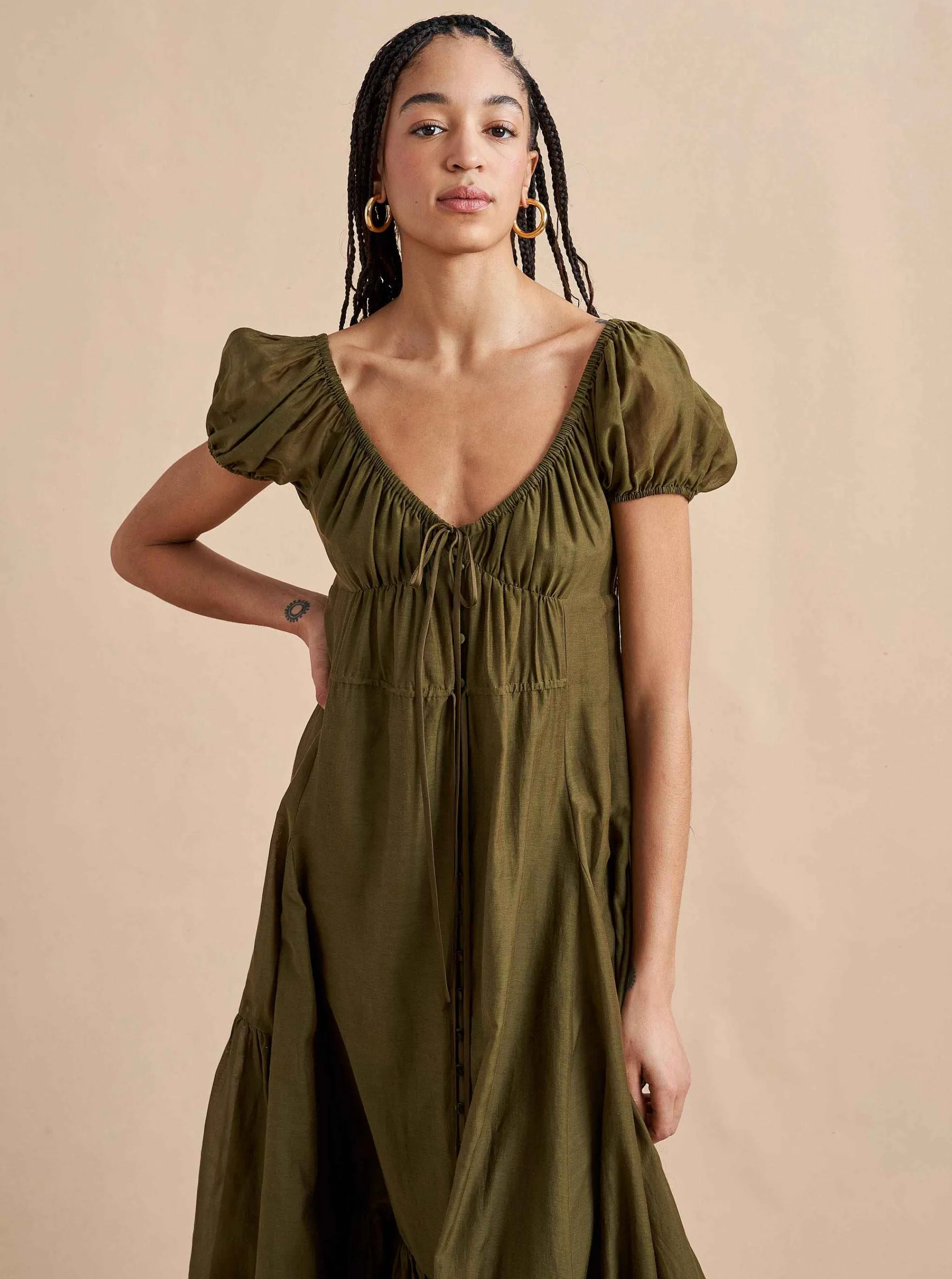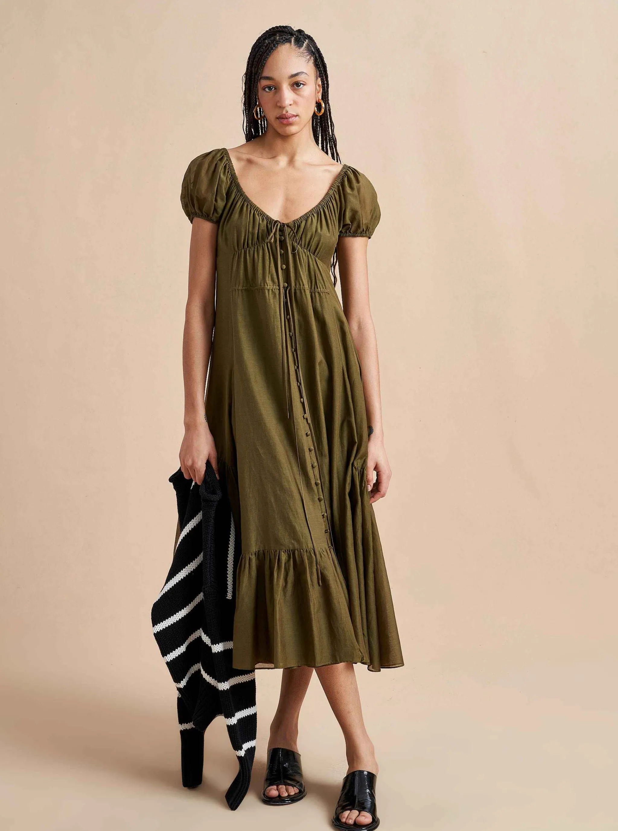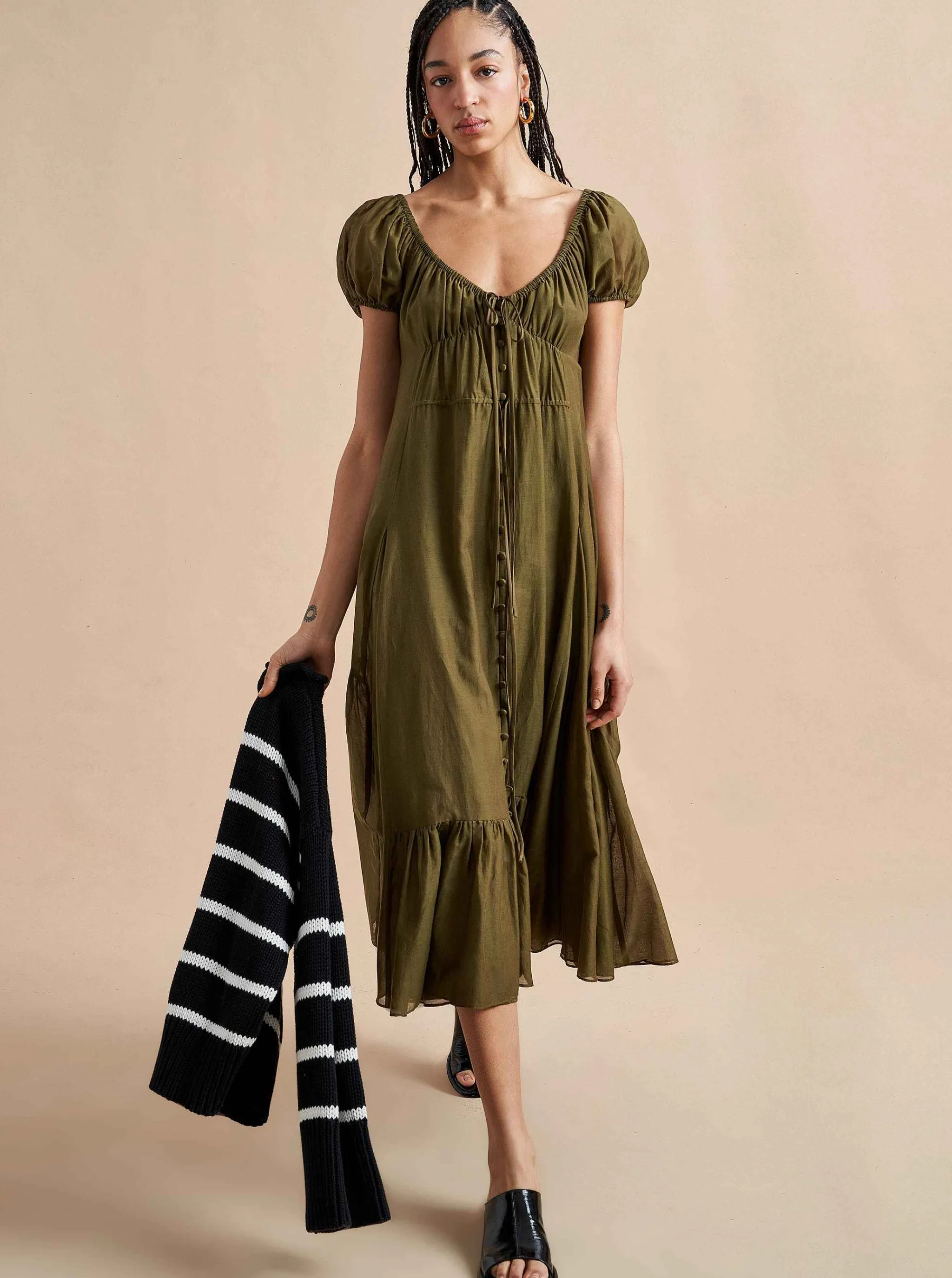 Romance Is Alive And Well In Our Josie Dress Featuring An Empire Waist, Covered Buttons, Puff Sleeves And An Elasticated Back To Make It An Easy Popover Style.