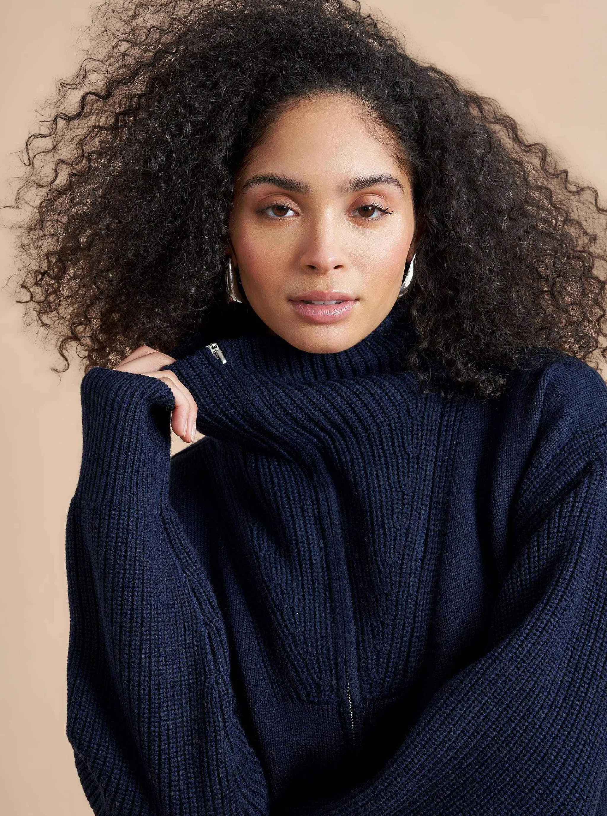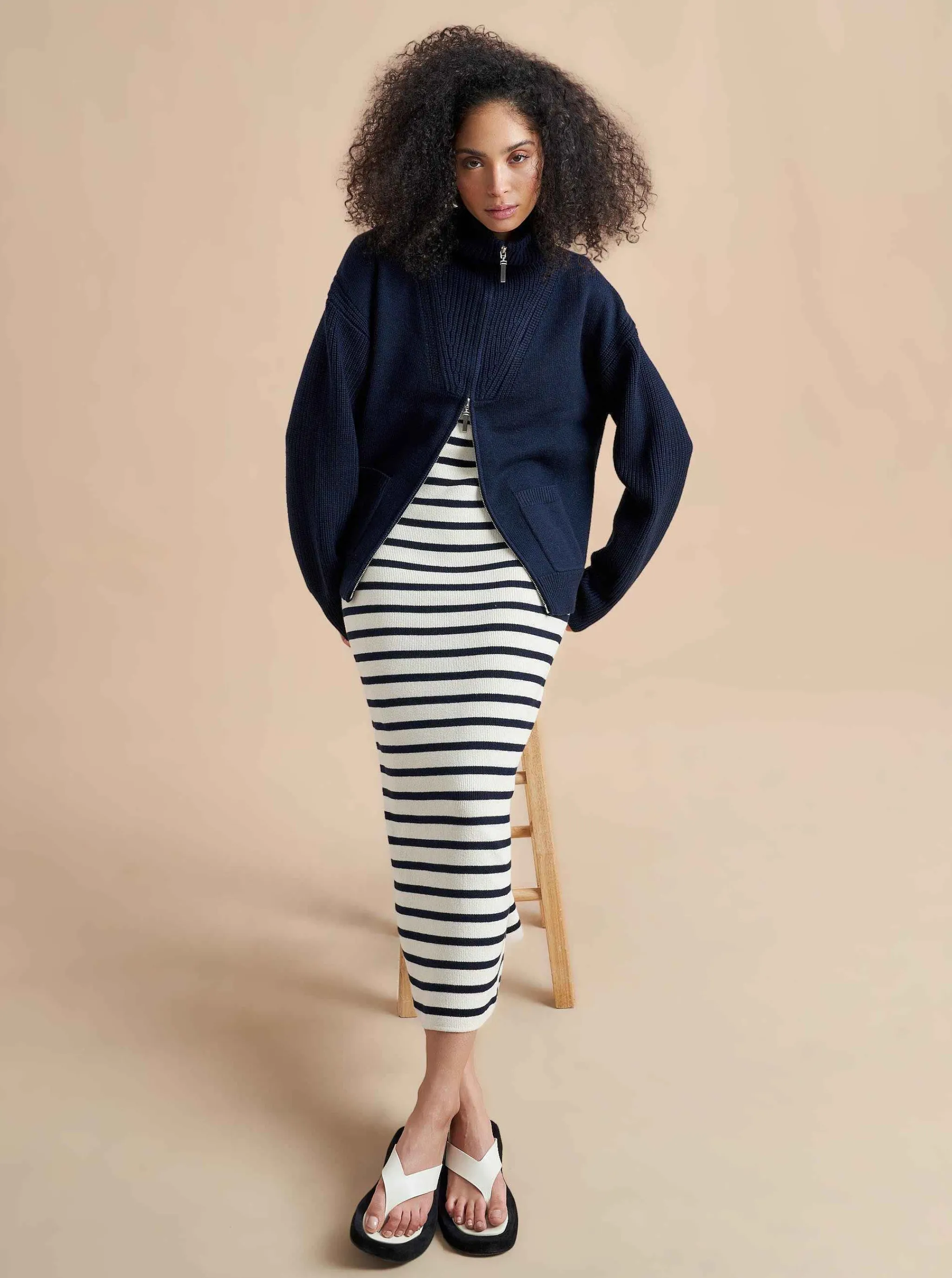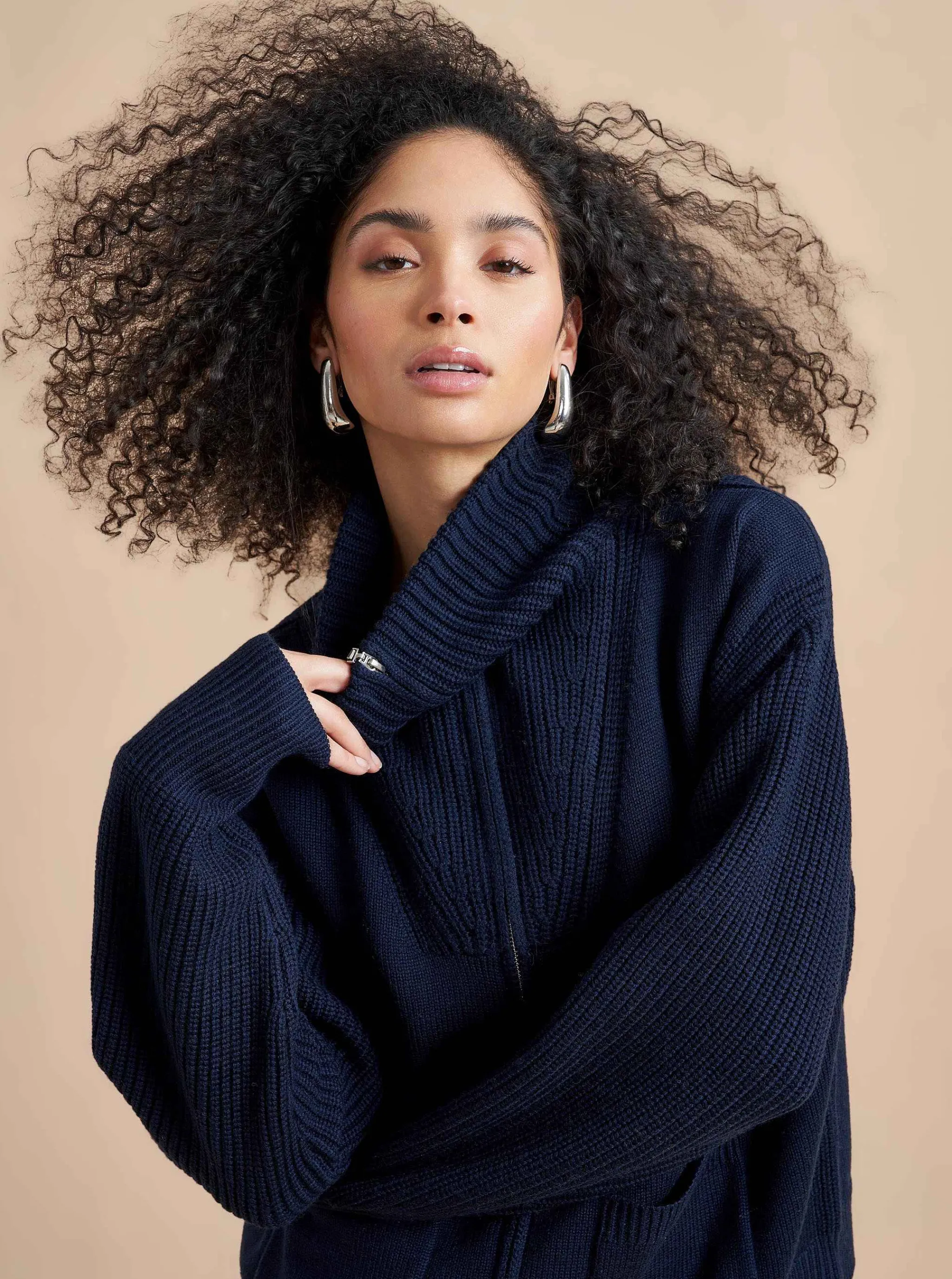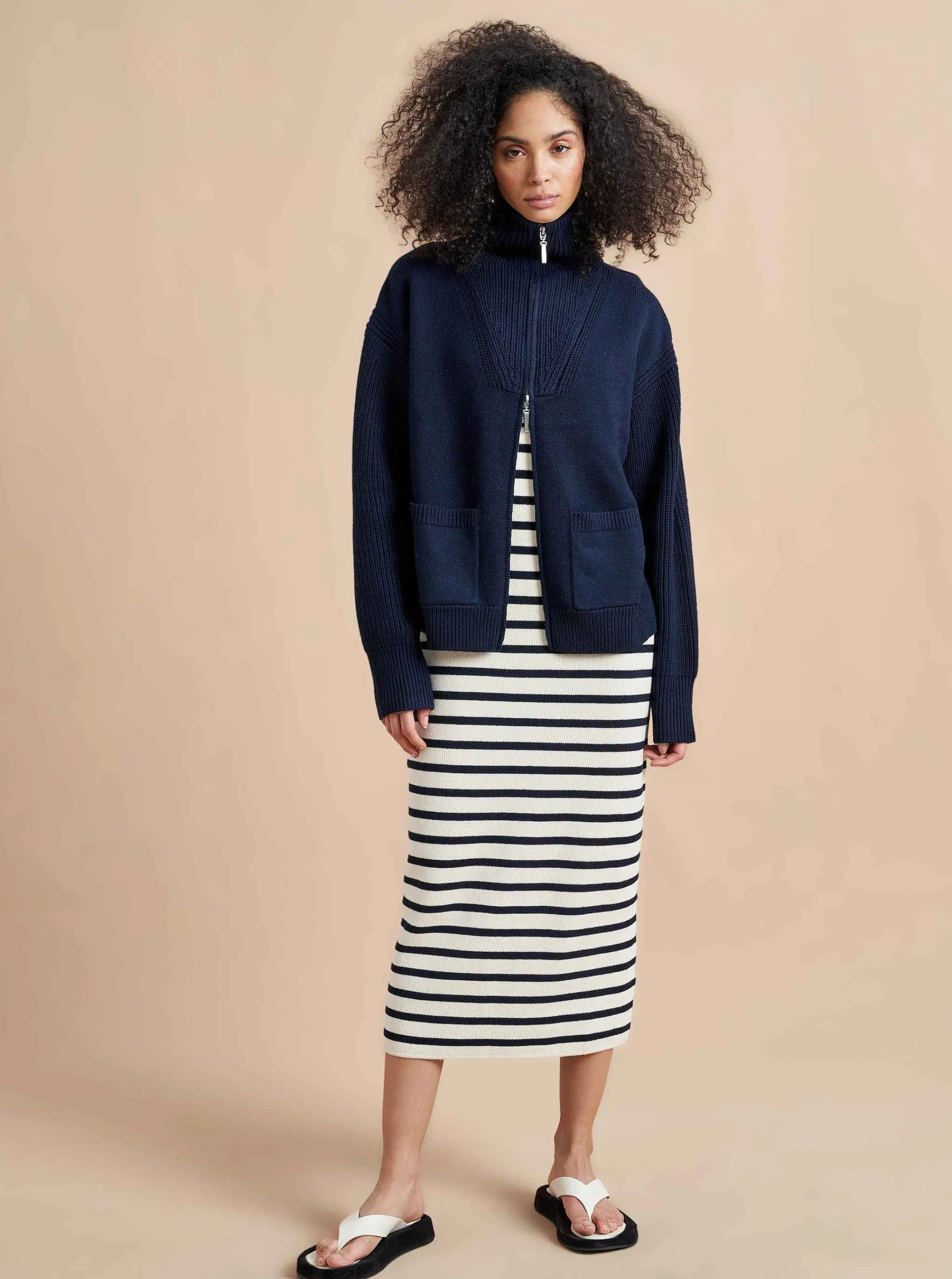 La Ligne Sweaters*Bastien Full Zip Sweater Navy