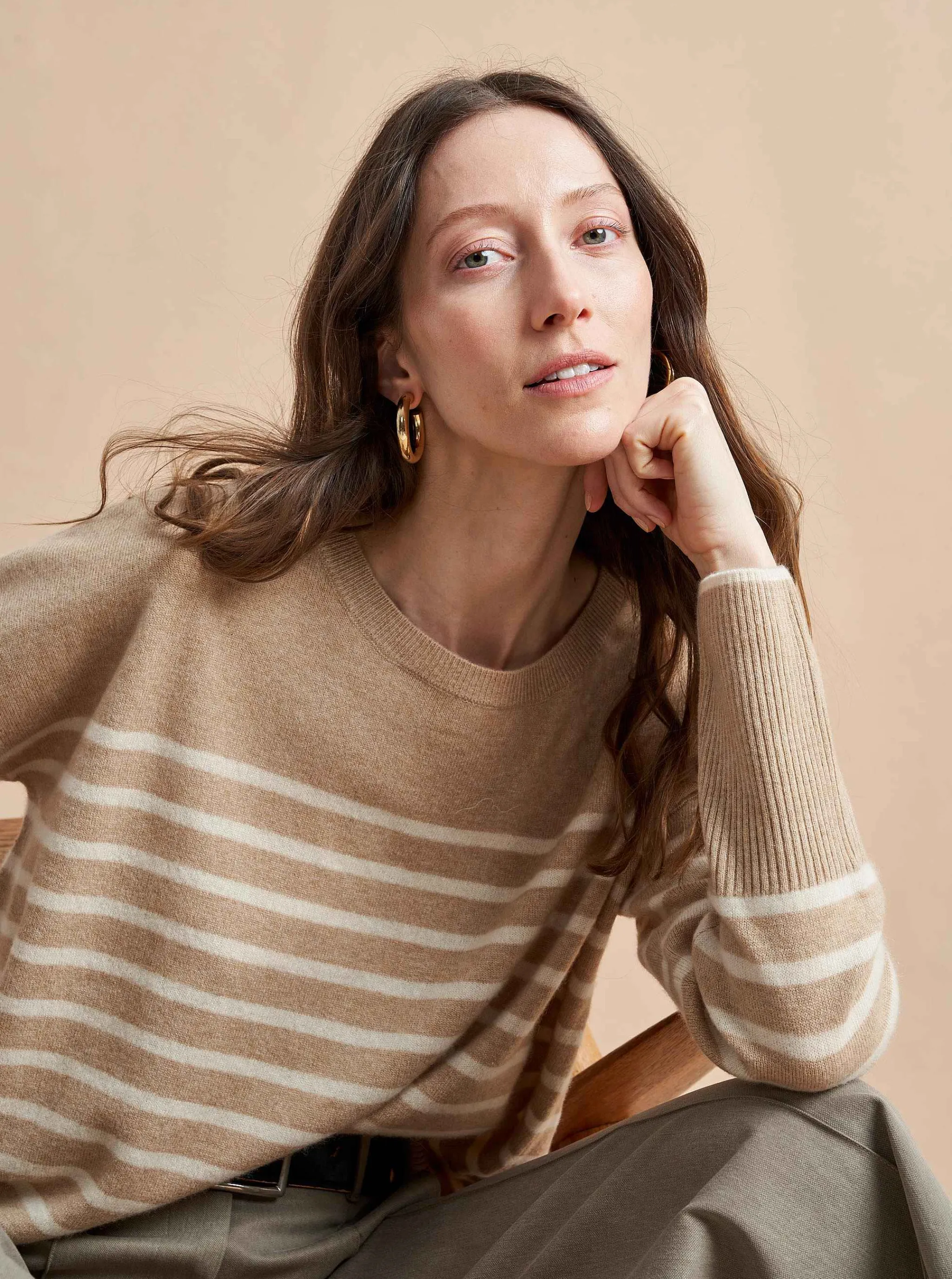La Ligne Sweaters*Boyfriend Lean Lines Sweater Camel/Cream