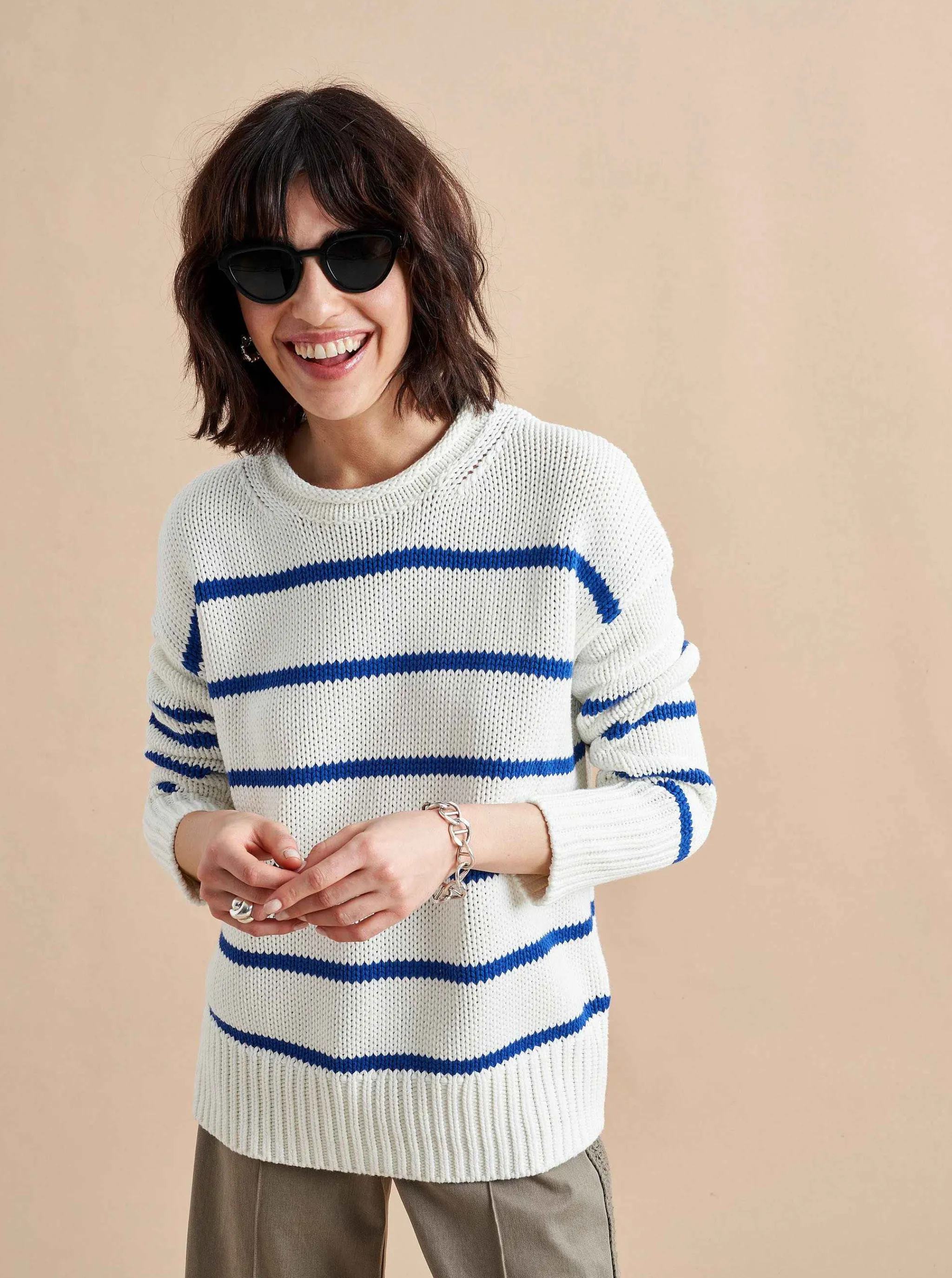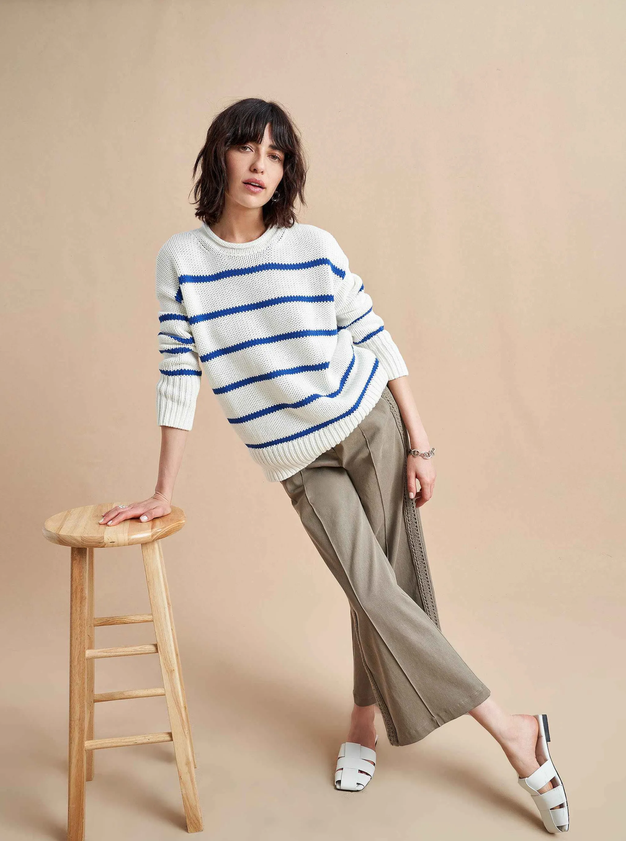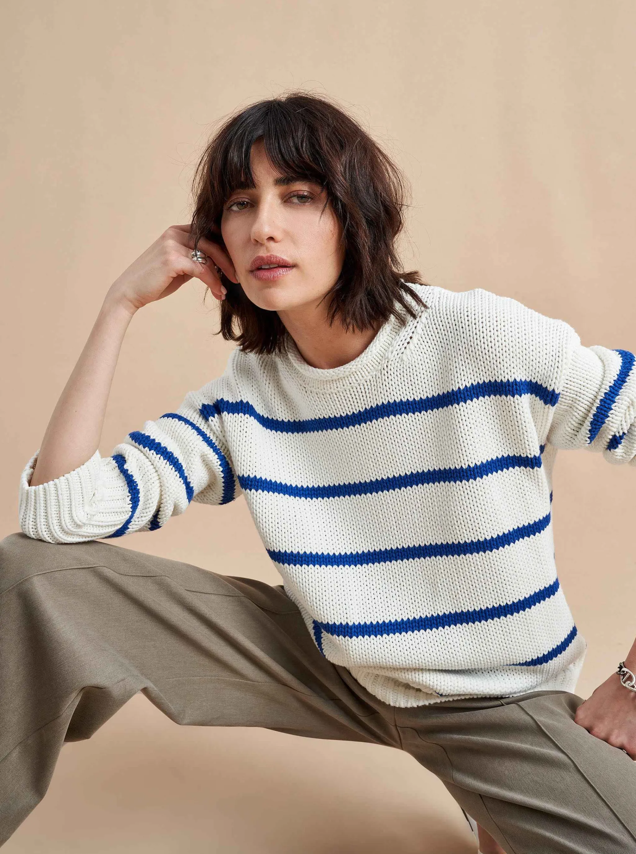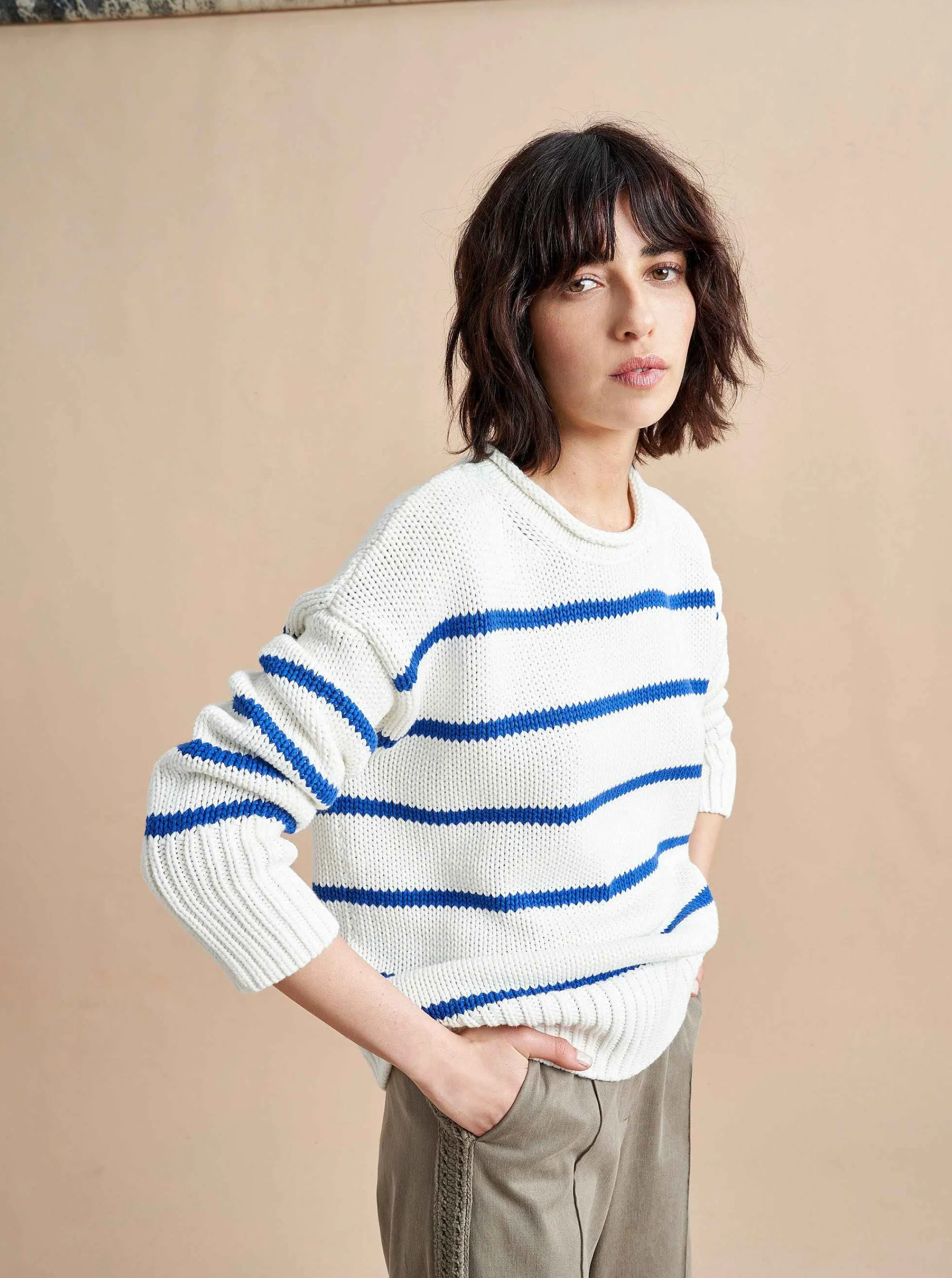 La Ligne Sweaters*Marina Sweater Cream/Cobalt