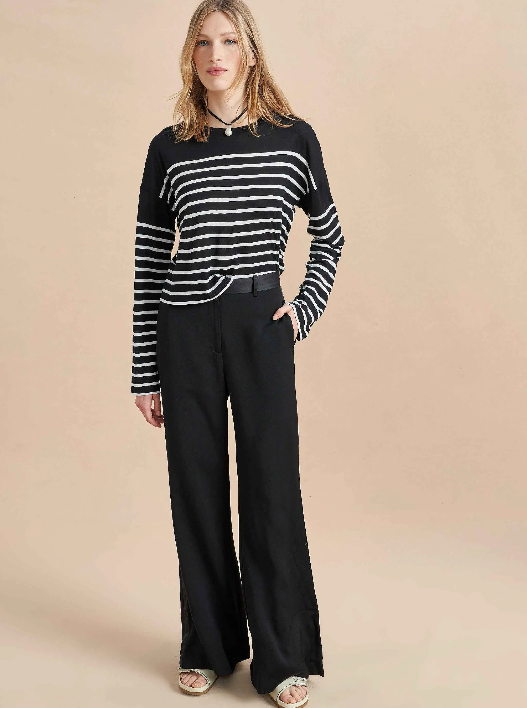 Our New Take On The Breton Tee In A Delicious, Tissue-Weight, Viscose/Silk Blend. This Roomy Tee Features Long Sleeves With A Classic Drop Shoulder.