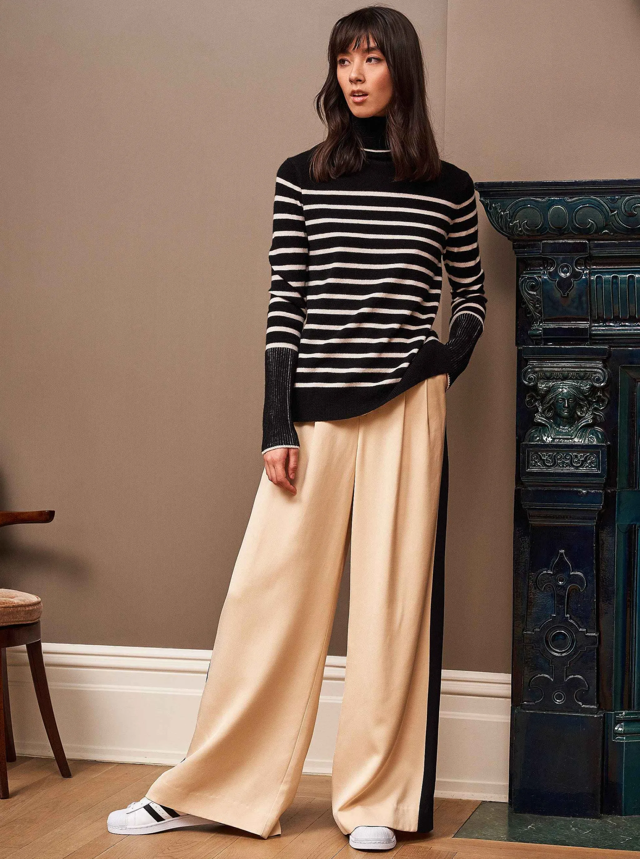 Anytime. Anywhere. Anyplace. We Combined Our Signature Aaa Sweater With Our Top Selling Lean Lines Tee To Bring You The Ultimate Year Round Essential Now In A Turtleneck Version. You Know That Piece, The One You Hope No One Will Notice You’Ve Worn Three Days In A Row? This Is That Sweater In Black And Cream Cashmere. You Can Thank Us Later.