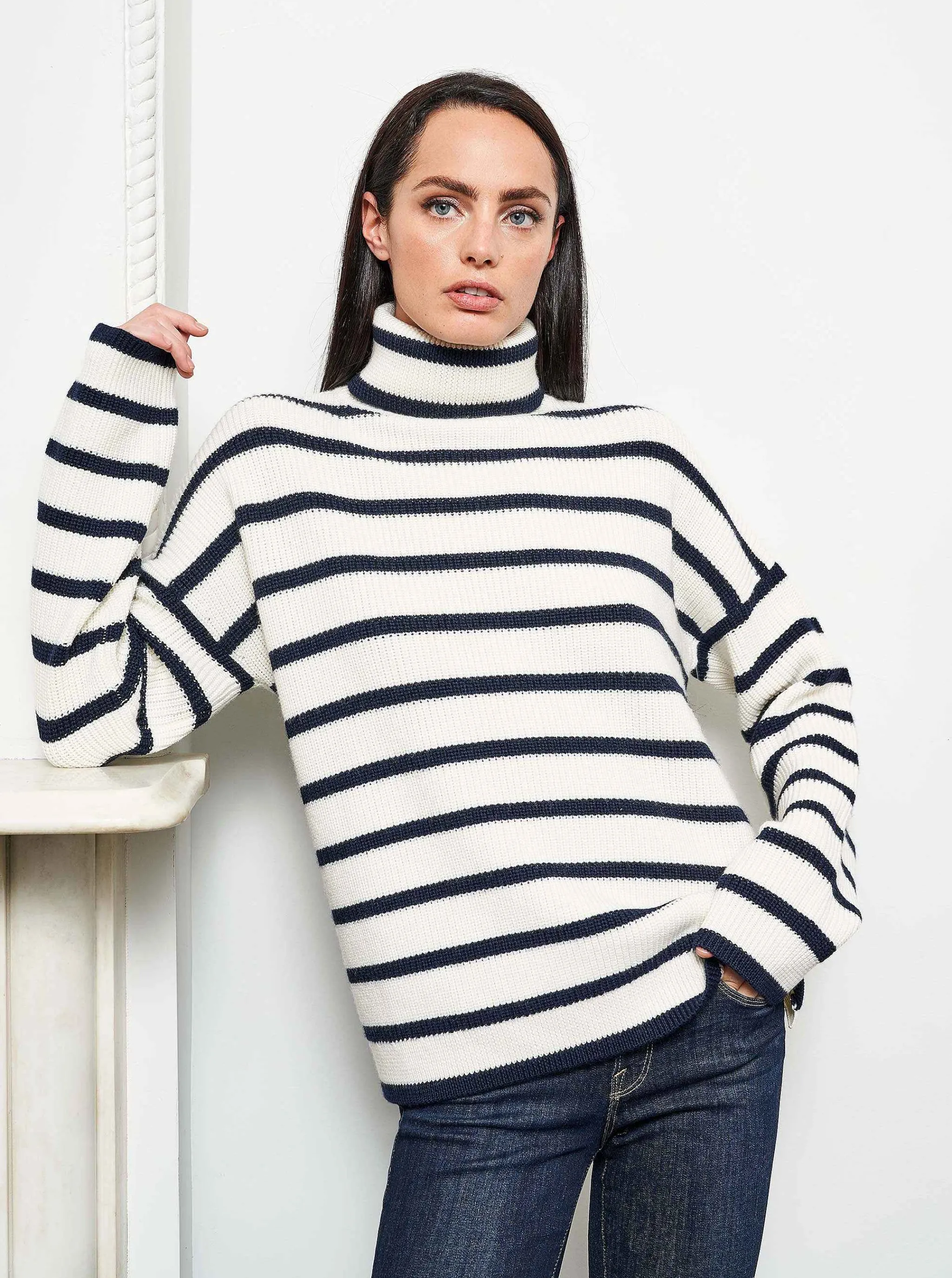 This Super Soft, Merino Wool, Stripy Turtleneck Is The Perfect Cover For Any Look. With Side Slits And A Roomy Body, It …